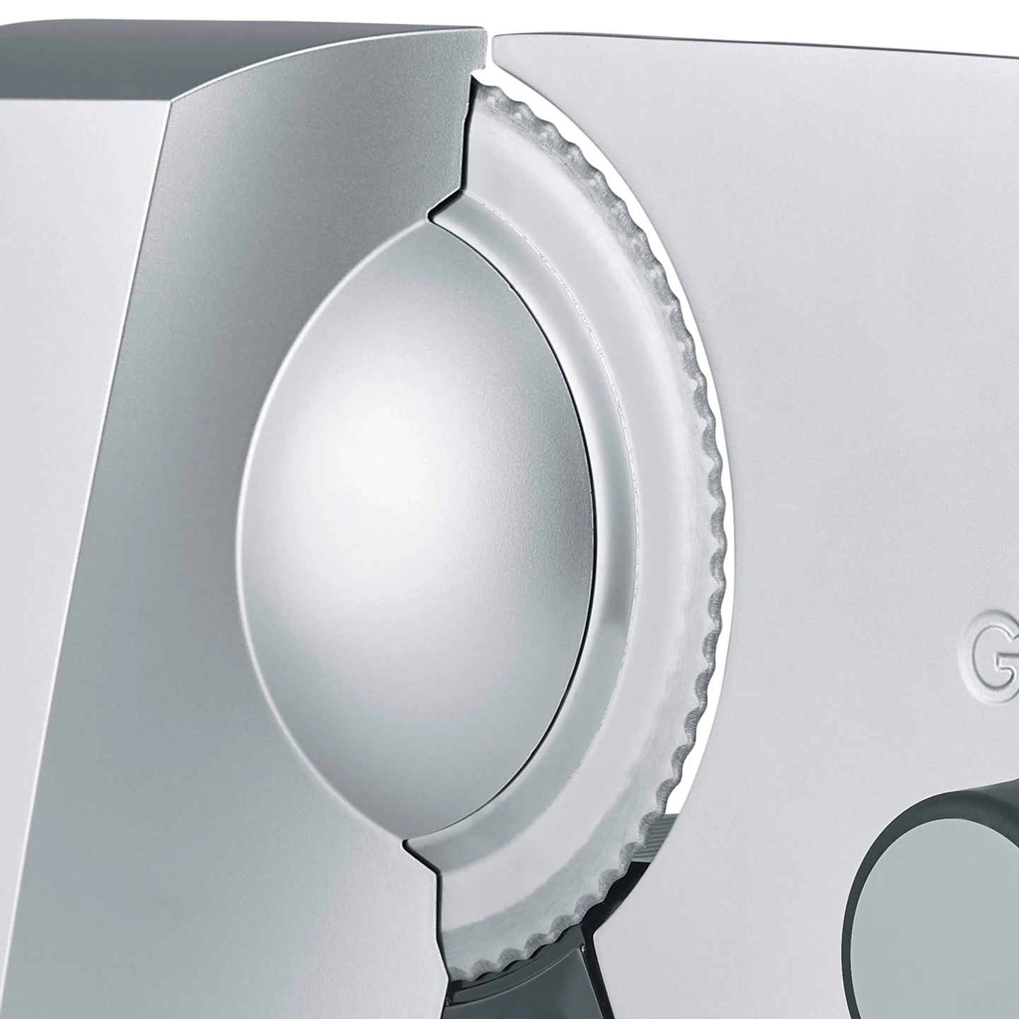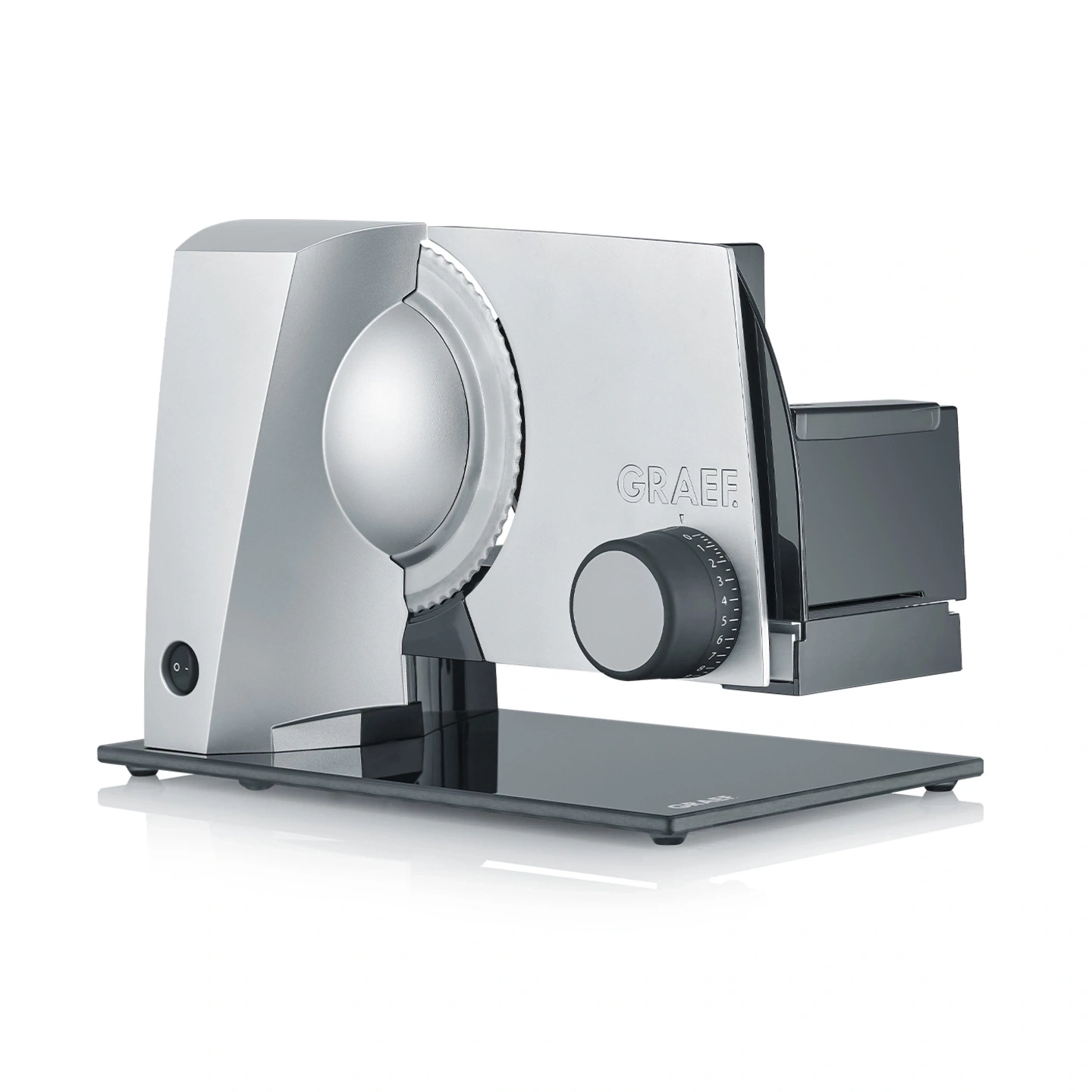 - Your style, your choice – free-standing, stylish metal food slicer with glass base plate, available in the popular TWIN version with an additional smooth blade for ultra-thin slices.